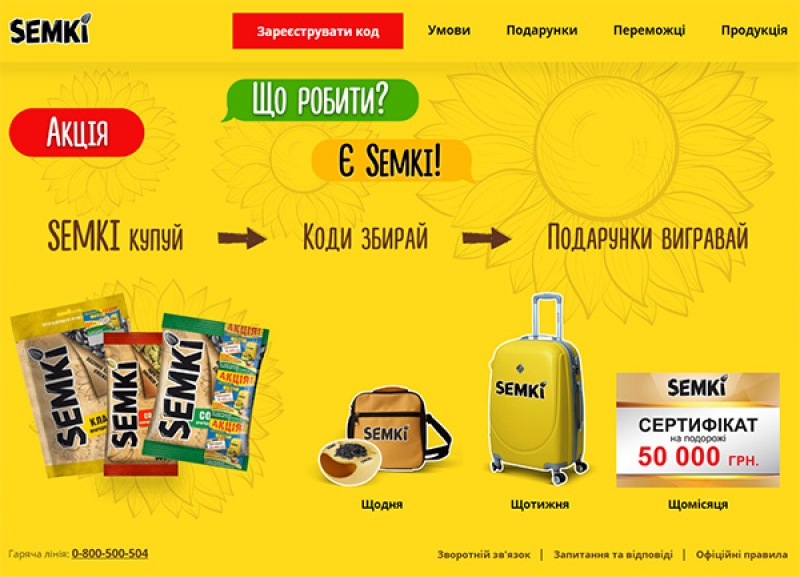 Схожая механика и главный приз и у другого популярного в Украине бренда – ТМ Semki. Покупателю необходимо найти код в упаковке семян и зарегистрировать его на сайте или по SMS. Акция «Що робити? Є Сємки!» стартовала еще 14 мая и продлится до 13 августа. Победителю достанется сертификат на туристическую поездку номиналом 50 000 грн. Кроме того, проходят ежедневные розыгрыши брендированных тарелок и еженедельно – туристические сумки. Партнерство с Semki для LEAD9 уже второе по счету.