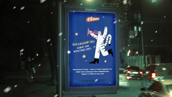 Цієї зими всюди можна побачити привітання від щасливих тигрів. Але реальні справи цих тварин доволі кепські. Загалом у світі залишилося лише 6500 особин шести підвидів. Тому «Сільпо» разом із R Agency розробили новорічне промо, щоб привернути увагу до цієї проблеми.