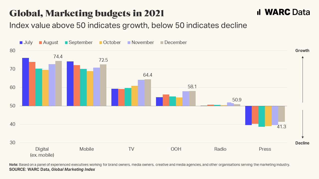 Огляд глобальних бюджетів на маркетинг за медіа у період від липня до грудня 2021 року.