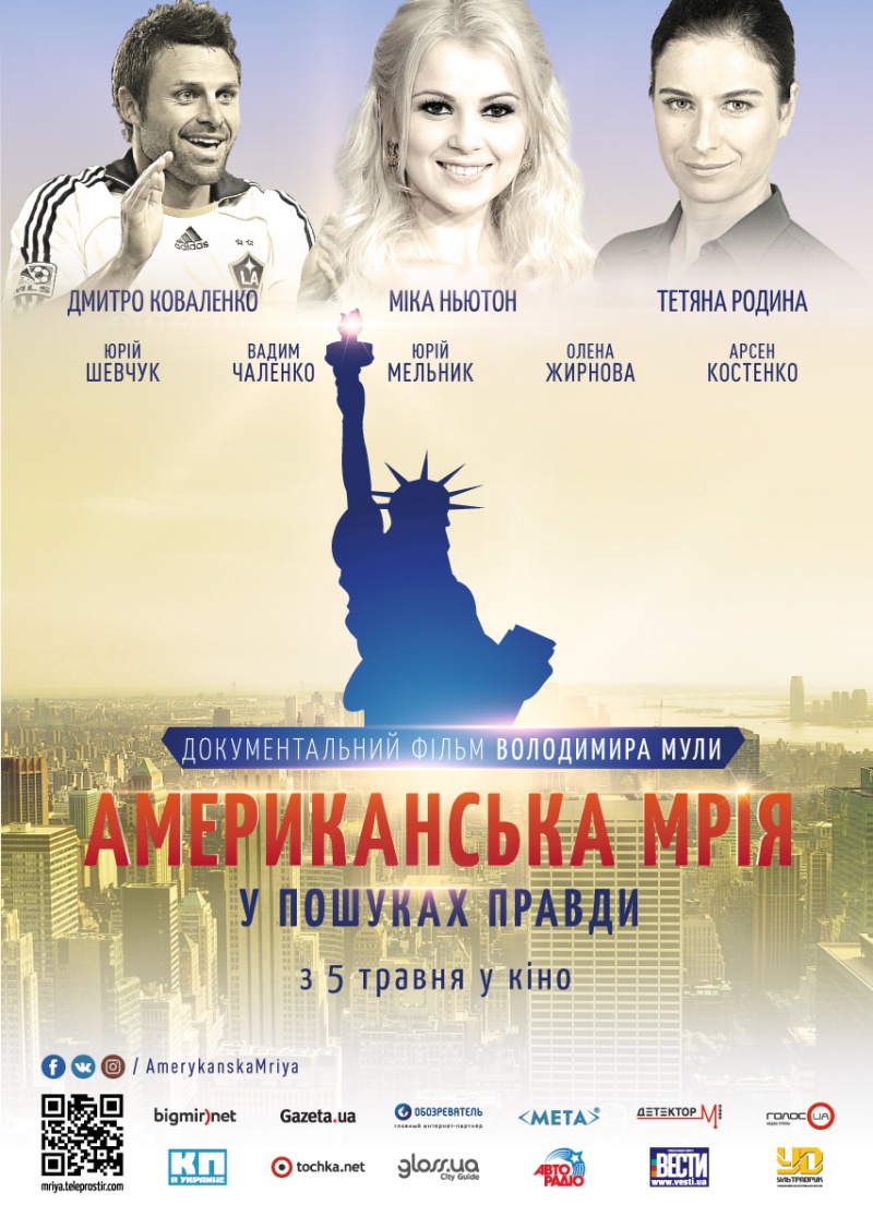 5 травня в український прокат виходить стрічка «Американська мрія. У пошуках правди». У фільмі глядачі побачать 8 успішних історій українців, які не так давно покинули Батьківщину та досягли успіху за океаном.
